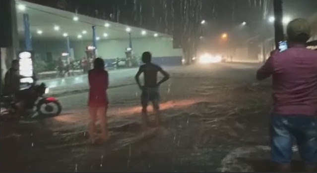 Chuva torrencial deixa ruas de Poção de Pedras submersas