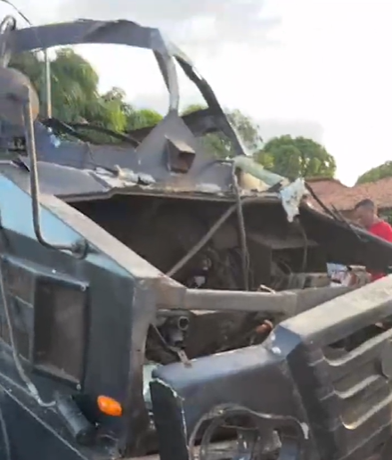 Em dado momento da ação criminosa, o veículo ficou extremamente avariado devido a uma forte explosão que rompeu com a blindagem. Os destroços do carro-forte, bem como o cofre em que o dinheiro era transportado, ficaram espalhados pela estrada.