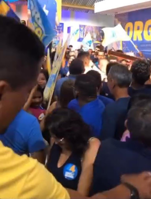 O evento aconteceu no Ginásio do Colégio Artur Azevedo e começou no início da noite. A quadra estava completamente lotada, derramando gente pelos arredores do ginásio, destacando a massiva presença de apoiadores e simpatizantes.